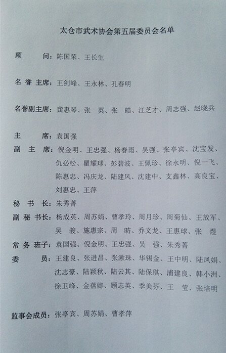 太仓市武术协会第五届委员会名单